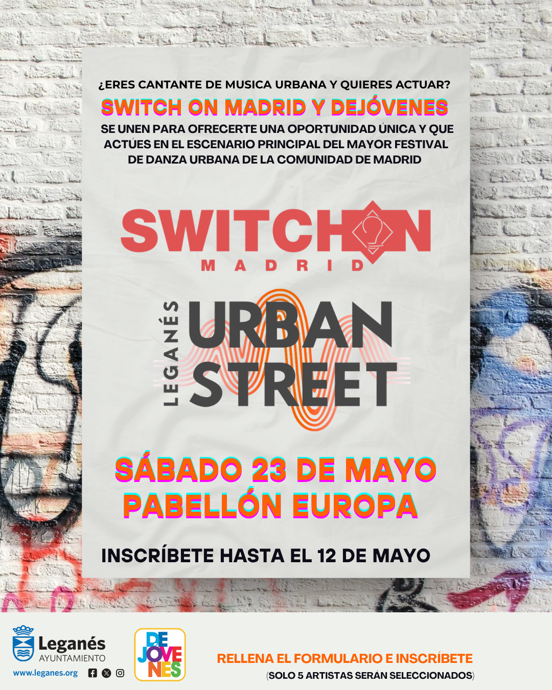 Switch On Madrid y Dejóvenes se unen para ofrecerte una oportunidad única y que actúes en el escenarío principal del mayor Festival de Danza Urbana de la Comunidad de Madrid.