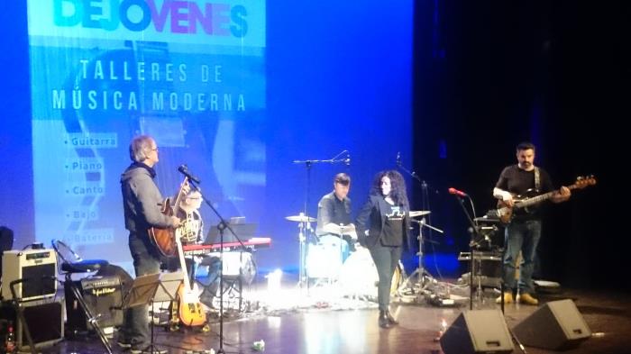 L@s profesores/as de los distintos talleres (guitarra, bajo, batería, teclados y voz) realizaron una actuación con música en directo donde fueron haciendo un recorrido por los orígenes musicales a través de los distintos instrumentos e interpretando versiones de temas en sus diversos estilos durante una hora y media, resolviendo también las dudas que l@s estudiantes les fueron planteando.