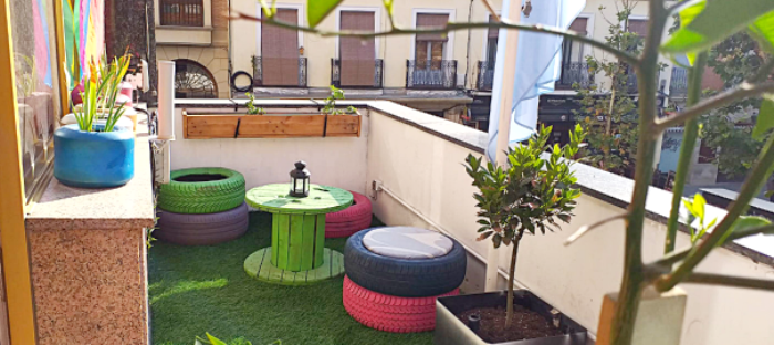 Además de decorar el espacio, el objetivo también es darle una nueva utilidad para que pueda ser disfrutado por las y los jóvenes de Leganés. En esta última ocasión hemos acondicionado el balcón situado en el Centro Dejóvenes de Plaza de España. Las chicas y chicos que acuden al Centro han construido:
